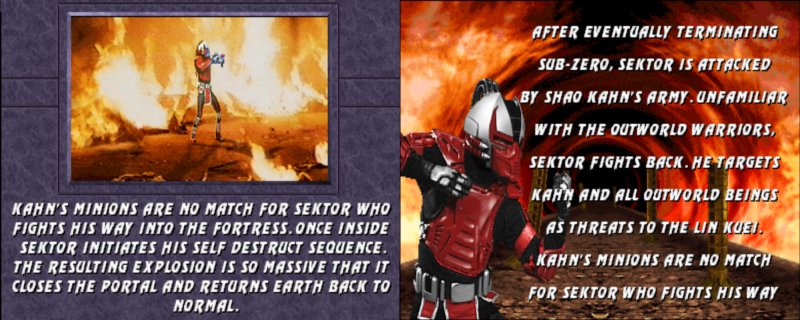 The original MK3 endings (left) featured unique character-specific images; UMK3 removed these in favor of the appropriate character's Versus Screen portrait & text (right).